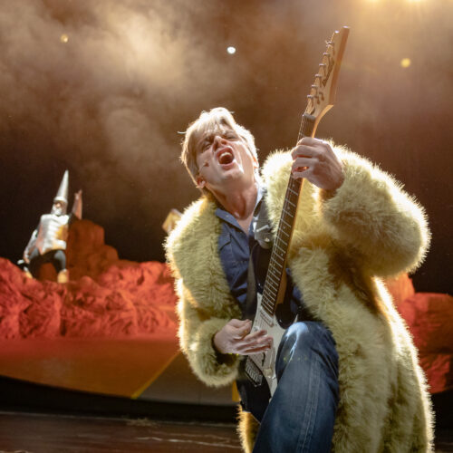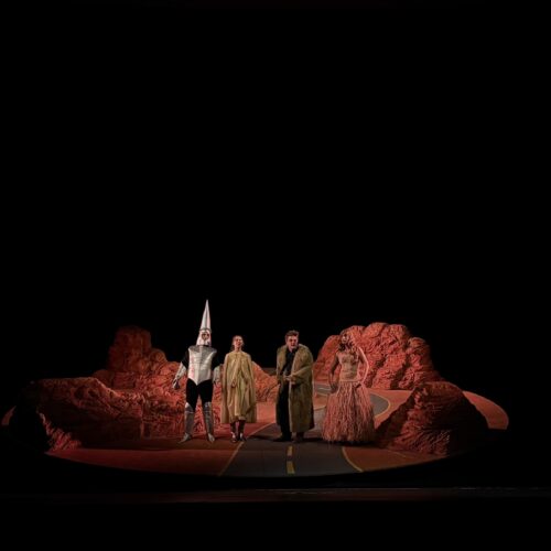 Grit Lukas nimmt sich die Freiheit, die Story vom alles auslösenden Wirbelsturm anders zu erzählen. Vielleicht findet der sogar nur in Dorothys Träumen statt. Die fantastische Welt, in der sie sich plötzlich wiederfindet (Bühne und Kostüme: Hannah Wolf), ist wundersam und klug ersonnen. Die berühmte „Yellow Brick Road“ besteht hier nicht mehr aus gelben Ziegelsteinen, sondern ist asphaltiert – mit akkurat gezogenem Mittelstreifen. Und das Schild der „Route 66“, das über dem Weg hängt, deutet womöglich an, dass dieses seltsame Land, in dem Dorothy gelandet ist, Amerika heißen könnte. (...)