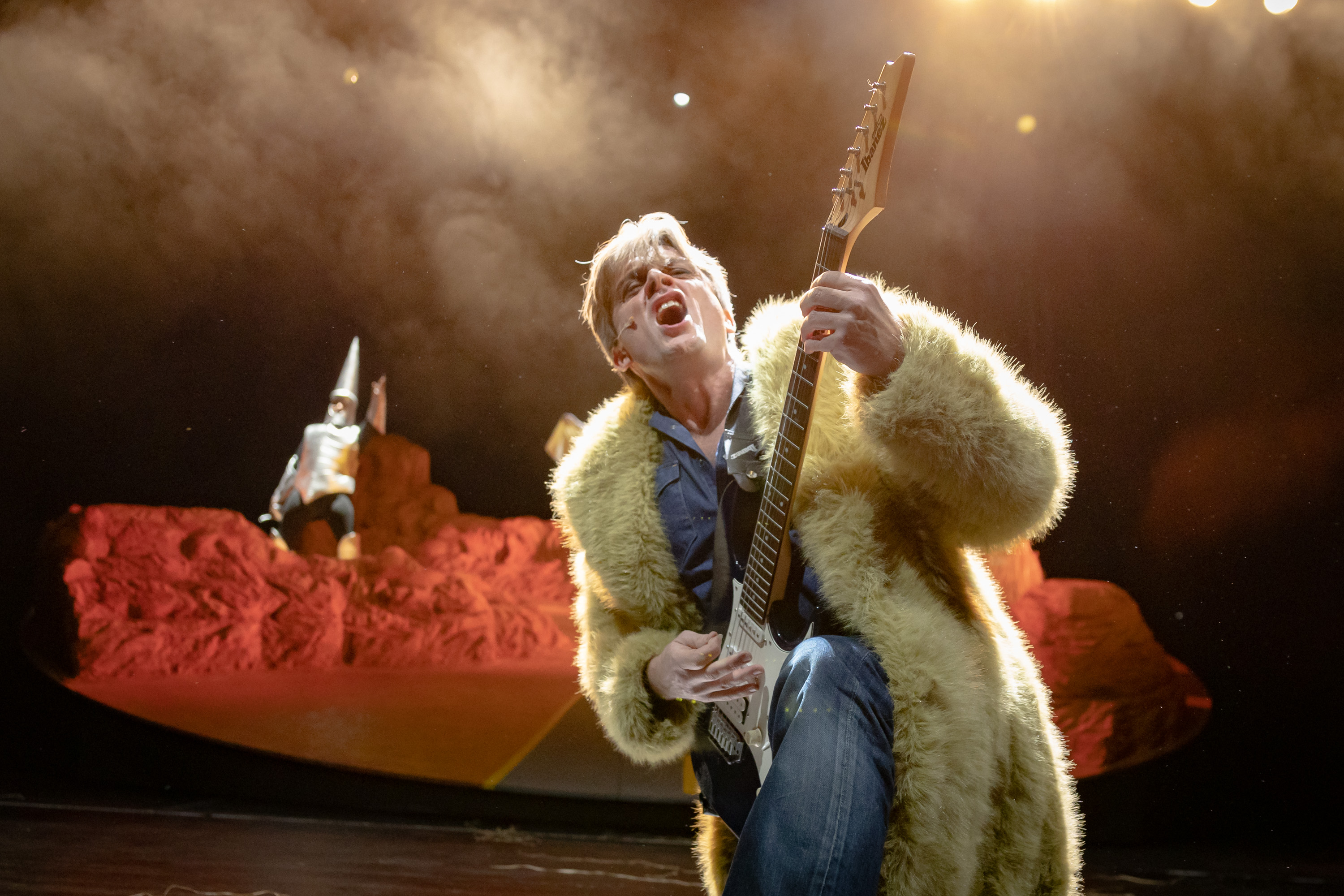 Grit Lukas nimmt sich die Freiheit, die Story vom alles auslösenden Wirbelsturm anders zu erzählen. Vielleicht findet der sogar nur in Dorothys Träumen statt. Die fantastische Welt, in der sie sich plötzlich wiederfindet (Bühne und Kostüme: Hannah Wolf), ist wundersam und klug ersonnen. Die berühmte „Yellow Brick Road“ besteht hier nicht mehr aus gelben Ziegelsteinen, sondern ist asphaltiert – mit akkurat gezogenem Mittelstreifen. Und das Schild der „Route 66“, das über dem Weg hängt, deutet womöglich an, dass dieses seltsame Land, in dem Dorothy gelandet ist, Amerika heißen könnte. (...)